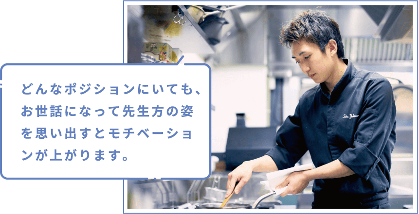 今は主に前菜担当ですが、他のサポートに入ることも。