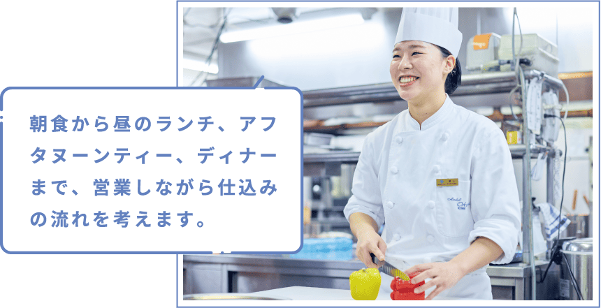 ホテルやレストランで、大量調理に対応できる技術を磨く