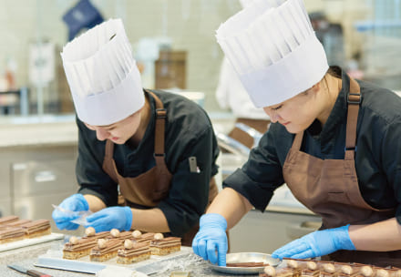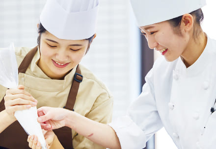 洋菓子・和菓子・製パンについて、それぞれの器具の使い方からレシピ、プロに求められるハイレベルな技術まで習得。