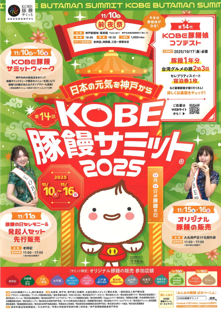 KOBE豚饅サミットは、南京町『老祥記』、神戸元町『四興樓』、『三宮一貫楼』の老舗3店舗が中心となり、神戸名物である「神戸の豚饅」を通し、神戸の街を更に元気にという願いをこめた神戸元気UP!プロジェクトです