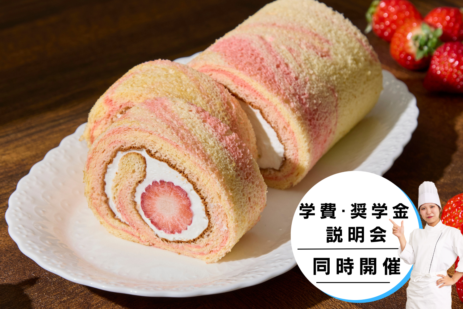 | 実習メニュー | 華やか!苺のロールケーキ |