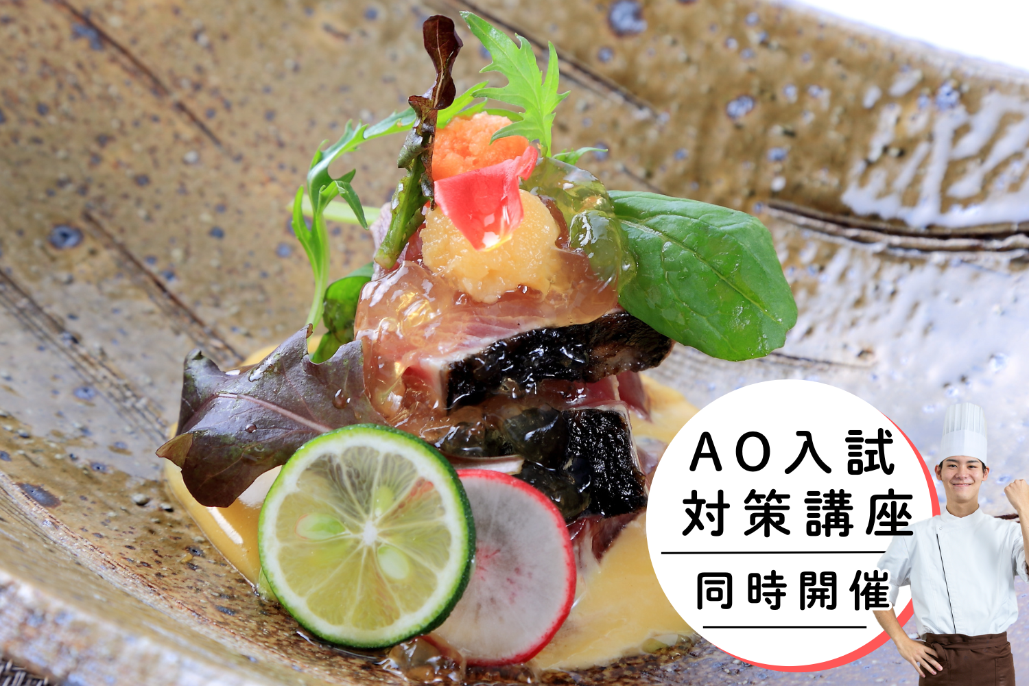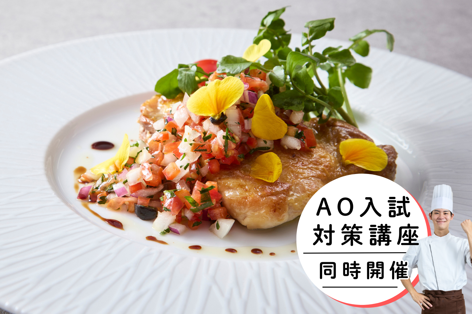 | 内容 | 学校説明会→キッチンライブ(参加者の体験はございません)→個別相談 ※改修工事実施中のため、通常使用する実習室以外での体験となる場合があります。ご了承下さい。 |