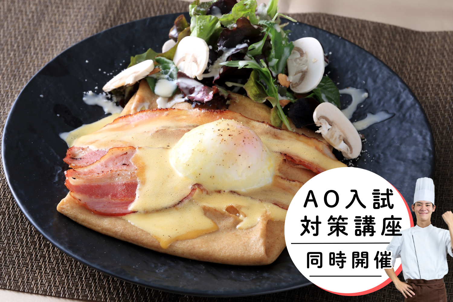 | 実習メニュー | 濃厚チーズが主役のガレット ハーブとリーフサラダ添え |