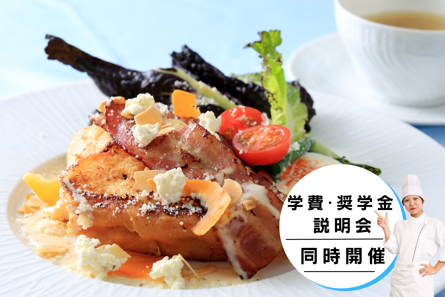 | 内容 | 校舎内の改修工事実施に伴い、当初予定しておりましたプログラムを一部変更させていただくこととなりました。 【変更内容】 ・ランチビュッフェの中止 ※工事の影響により、安全面を考慮して中止とさせていただきます。 ・通常使用する実習室以外での体験となる場合があります。 【当日の流れ】学校説明会→体験実習→試食(体験実習で作ったもの)→個別相談 |